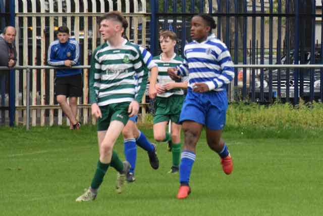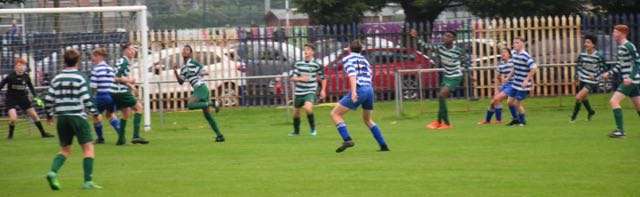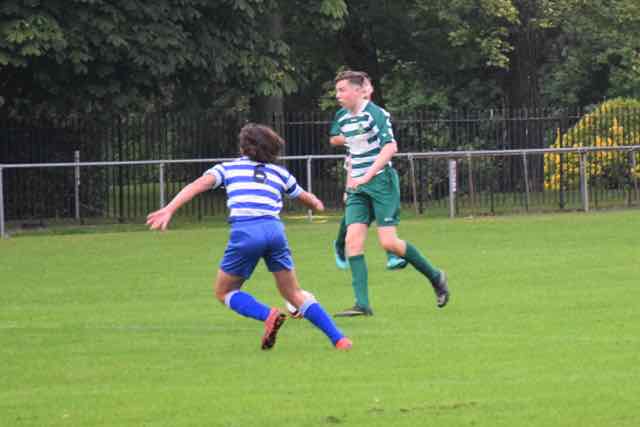 The home team came out fired up in the second half. The formation was changed as they put two up front and ironically this helped their midfield where their Brazilian midfielder, Sean, seemed to up a gear as he continued what is now a 6 year battle with fellow Gladiator , Celtic’s Mark Hughes. Farm launched everything forward but Daly and fellow centre back, Paul O’ Neill were in imperious form. The second half was proving to be an intense affair. Celtic were limited to half chances while Farm’s best chances were a cross goal header from Sean that went just wide and a counter attack with 5 minutes left that forced Daly to make a timely tackle. FT: 0-1