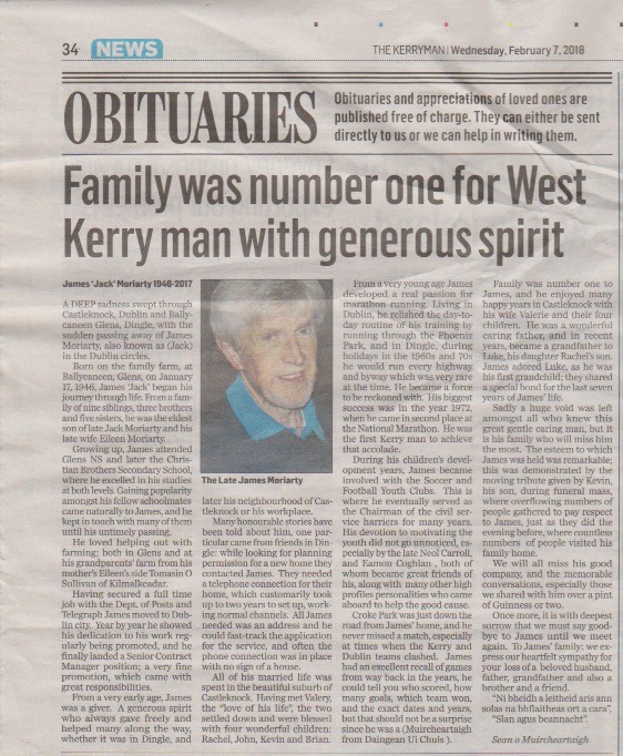 Jack Moriarty RIP Obituary The Kerryman
