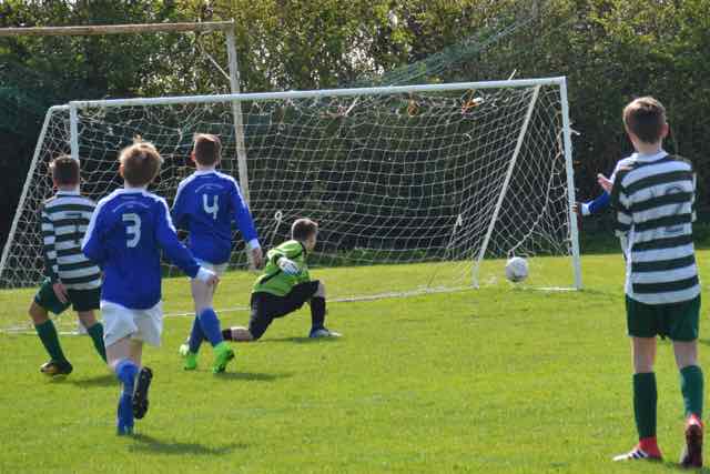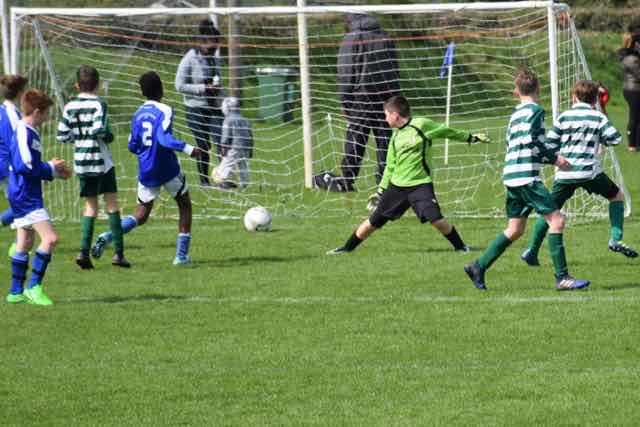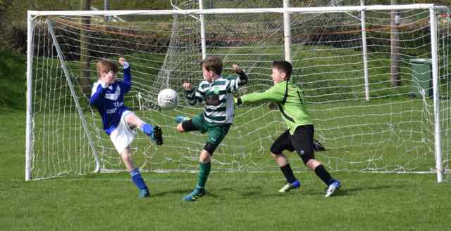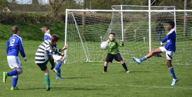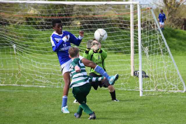 Celtic continued their winning run when they had their fourth win on the spin away to Ballyoulster Utd. It was a tight contest from the start and either side could have gone in front. There was a real scare for Celtic after 11 minutes when the home side’s No.7 shot low and hard, but yet again for the umpteenth time this season, Ethan Hoey performed a fabulous save, this time with his right foot, and as the ball spun to the Ballyoulster No.11, the striker was just wide with his header.