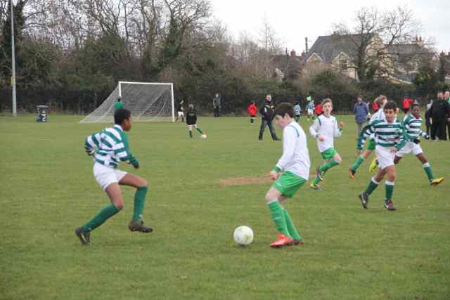 Castleknock travelled to Lucan this week hoping to continue their winning run of recent weeks. On a windy day, against a physically competitive Lucan side, it was always going to be a difficult encounter. Lucan started brightly and it was soon evident that they had real pace up front and created a couple of good early chances but failed to convert. However Castleknock soon settled in to their game and started to create some good chances themselves. Leon Girigan and Thomas Balogun were starting to cause problems for the Lucan defence and went close with a couple of chances. The Lynch twins in midfield were having to work hard in this game and they continued to switch play to both wings where Bode Lisoka and Ben Fleming were in sparking form this week. The breakthrough goal for Castleknock came from some good play down the right flank when Bode Lisoka provided a fine cross to Leon Girigan who stroked the ball home from six yards. Soon afterwards, some more excellent play from the opposite left flank saw Ben Fleming create another good opportunity for Leon. He did well to finish the opportunity despite stumbling to the ground first. Leon was unlucky not to complete his hat-trick shortly afterwards when he showed terrific pace to latch on to a poor backpass from a Lucan defender and just shot wide of the post. 2-0 to Celtic at half time.