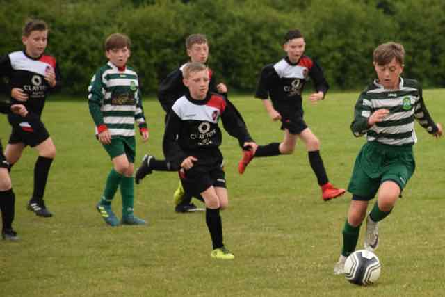 Celtic can consider themselves unlucky not to have earned a draw in this Quarter Final at home to Pearse Rangers. They fell behind early on to a shot that gave keeper Ethan Hoey no chance. Celtic bounced back and they were level after Oleg Sinkevics weaved his way through the defence before a devastating finish that gave the keeper no chance. Within acouple of minutes however, Rangers were back in front with another sweet finish. 1-2 at half time.