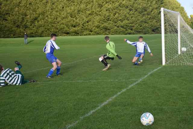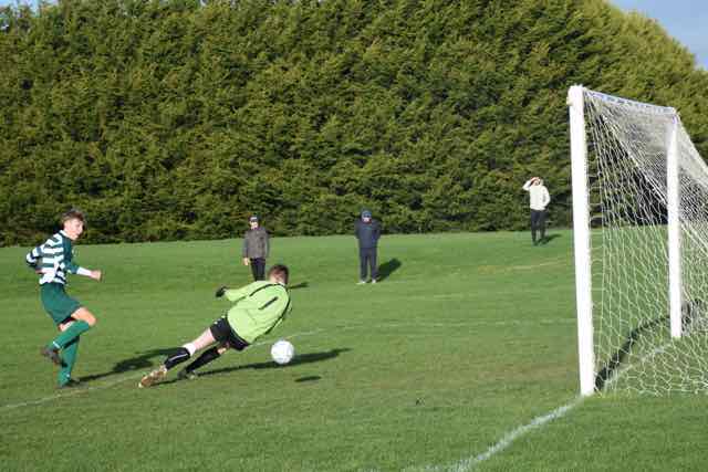After the break, the next goal would be critical following 3 fresh substitutes being introduced by Castleknock at the interval. Their impact was immediate and it was centre forward Luke Danaher who pulled one goal back for Castleknock. The home side continued to press for an equaliser, and it was Danaher again who gained parity for Castleknock after he broke through the Esker rearguard, raced forward before twisting left to calmly shoot past the retreating keeper and defender on the goal line. photo action Soon after, from a free kick at the corner of the penalty box, Sean Hogan's effort was nodded toward goal by Danaher but the striker was unlucky to see his header rebound off the post. It was then the turn of Killian Ronan to test the excellent Jason Gibbons in the Esker goal but the keeper pushed the wall wide with a superb save at full stretch.
