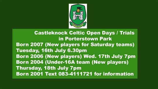 Castleknock Celtic, Open Days / Trials, in Porterstown Park