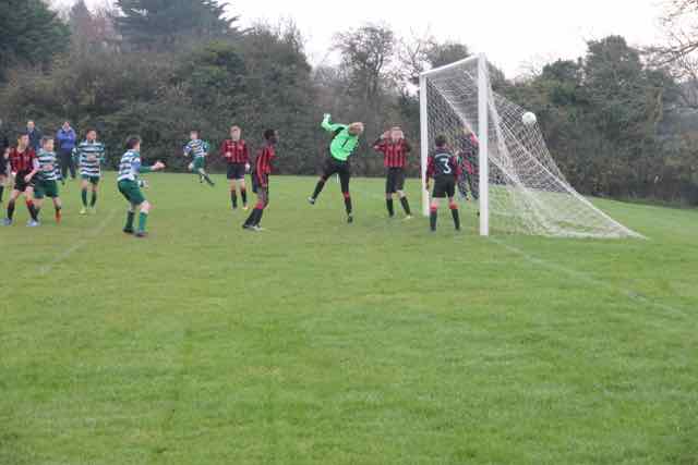 Love may have been in the air on Valentines Day but it was a case of Cup fever at Porterstown with many of Castleknock’s teams involved in league Cup action. Once again the Celtic squad was stretched with the loss of Alex San Emeterio (Travelling), and Aaron Rice (suspected Metatarsal injury) who had been in great form of late on the right wing. On the positive side Celtic welcomed back the talented Alex Doyle. Another tough Cup draw against a Major team pitted Celtic against WFTA in what represented another, pardon the pun, major challenge for the giant killing U13’s. After Castleknock’s epic close fought victory over Home Farm in the last round WFTA were well aware of the potential threat from the Celtic Express.