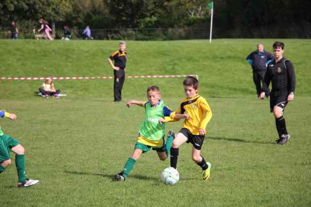 Celtic competed for every ball and never gave the Portmarnock players time on the ball. It was a very entertaining game with the play flowing from end to end. Theo Hennessy was guest goalkeeper for Celtic in the first half, stepping from his Under-9 team for which he plays on a Saturday. He was in splendid form and dealt competently with every shot that Portmarnock could manufacture. Ren Mulligan, Joseph Dunne and Ibrahim Hussein were dominant in defence, while Tadhg Leahy did not give the opponents an inch, using his body strength to hold off attackers, which is something he has learned from playing the other football code. Cosdel Burlacu and Pedro Minero were immense in the middle of the park and stopped many of the Portmarnock attacks from developing. Pedro’s skills on the ball were a joy to watch. Up front we had James Bannerman who fought hard to gain possession on the ball and went close on a few occasions to scoring. Ruben Aherne did well as he chased the ball and pressurized the opposition in his first game. The golden moment in the game came mid way through the second half when Ren Mulligan sent through the perfect pass to John Ogumtuase. John still had much to do, but he raced forward with the ball and just as the keeper was about to block him, John shot low and hard which sent the supporters wild on the touch line. Well done John, and his goal probably made him a candidate for man of the match. But it was given to Ren Mulligan who gave a superb display of footballing skills, tackling well as he used his upper body strength which he has perfected, beating players, distributing the ball, and never stopping for a breather. Well done to Ren for his award, and to the rest of the team on the day for a brilliant first game. See you all at training on Thursday at 6.30pm.