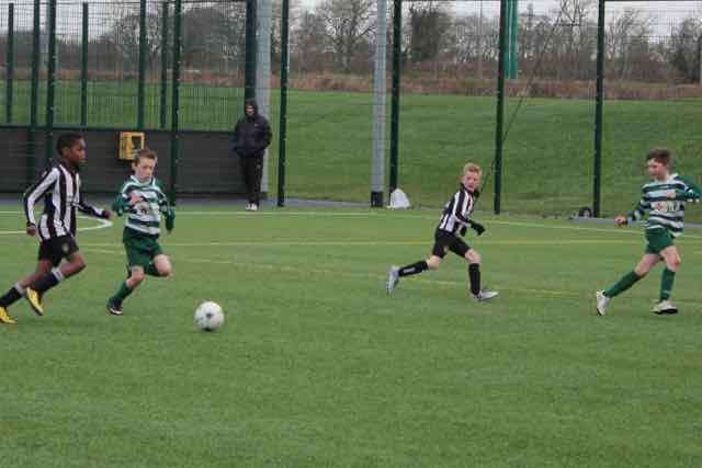 The start of the second half saw Boscos with the help of the wind start to increase the pressure but the defence of Dylan Clark, Cian Hegarty and Finn White never put a foot wrong. As usual anything that did get through was dealt with by our excellent keeper Callum Sheridan who made 3 good saves when called upon. The fourth goal came following a great run from Cian Hegarty after a passing movement between Jack Littleton and Michael Wiley. Frankie got possession and he whipped the ball across the goalmouth where it was finished with ease by Cian who had followed up the play.