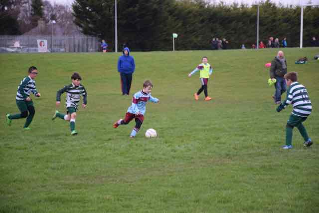 Castleknock Celtic came head to head against Vianney Boys for the third time this season at 3 different venues. This time it was at home in Porterstown Park on a mild morning after a couple of months of miserable rain. Celtic were keen to show the progress they have made this season, especially after an excellent win a couple of weeks ago at the National Sports Campus against Clontarf FC. They set about their task well. They held the visitors goal-less till midway through the first half, but a smart piece of finishing by Vianney gave them the advantage. Celtic did not lose heart and bounced back with a great piece of battling by Cosdel Burlacu who raced into the box to dispossess the Vianney keeper and set up Pedro Moreno who shot home into the far corner of the net to level things. 1-1 at half time.