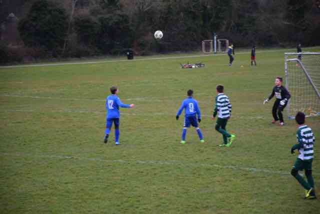The game started like an old fashioned Cup tie with pace and it was Collinstown who struck in the opening two minutes when their powerful No 12 burst through the defence before smashing the ball into the roof of the net. What followed was the charge of the Green & White Light brigade with a first half display never see before from a swashbuckling Celtic. They literally powered forward incessantly. The football was pure and intelligent and this produced chances – three over the top with the keeper beaten, two against the post, three wonderful saves by the Collinstown No 1 and that was just the ones that came closest. Esse, Ivan, Ben, James, Luke and Andre all came close but the Collinstown defence stood tall. Never has this Reporter seen such a one sided first half and how Celtic never scored will remain a mystery that perhaps only Sherlock Holmes (brother of Coach Sherlock) will solve. And despite all the possession and all the chances it took a wonderful save at the other end from “Mad” Max Ostachuk to keep the scoreline at 0-1.
