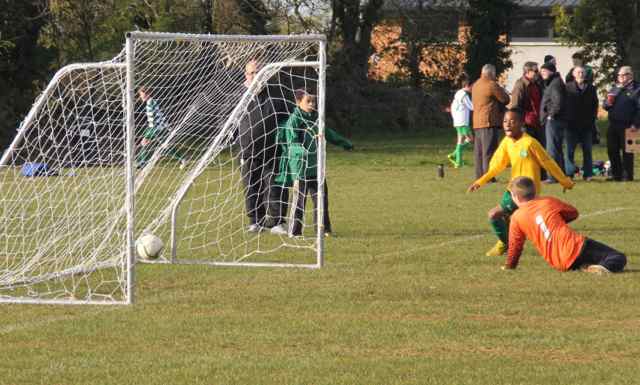 It was a chilly but bright morning in Porterstown for the Under 12’s clash between Castleknock Celtic and Drumfinn, Ballyfermot for this League Cup match. Despite an initial slow start to the game, Castleknock maintained strong possession in the early stages. Alannah Maxwell worked hard on the left wing and delivered a succession of crosses into the box. Colm Ayres, on the right wing had the first chance at goal which was blocked by the Drumfinn defence. Jonathan McAdam had some brilliant dribbles into the box but couldn’t find the net. Drumfinn broke the deadlock in the closing stages of the first half when their striker managed to score against the run of play to make it 1-0 at half time.