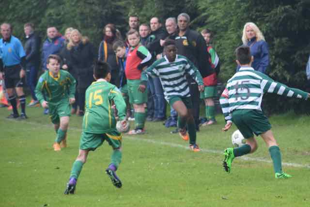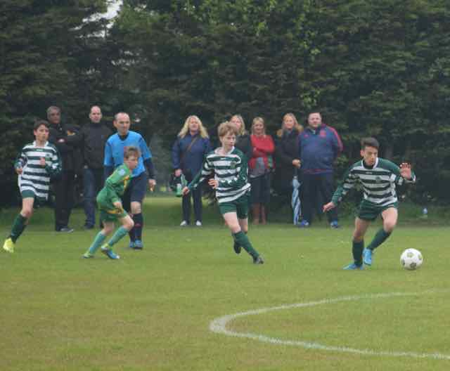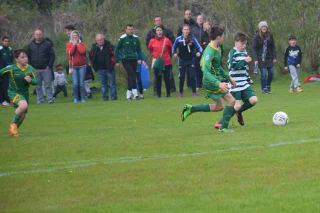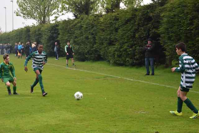 The 2 periods of extra time failed to produce a goal, with defences and goal keepers being in command. The dreaded penalty shoot-out was upon us, and all the supporters were on tenterhooks. Less worried however were the manager and coach who had seen their team come through the quarter final with a penalty shoot out win over top of the table Rathcoole Boys. Their confidence was well-founded, as their players stepped forward confidently - Klevis, Dino, Brendan, Kacem and Chuck. Kacem can be forgiven for not converting his penalty as he has had a magnificent season with his versatility, happy to take on any role in the team that his manager required. Apart from the brilliant penalties, Sabin Ghet made a magnificent save which effectively won the shoot-out. The important thing today was that the shoot-out ended 4-3 to Castleknock Celtic. some video action