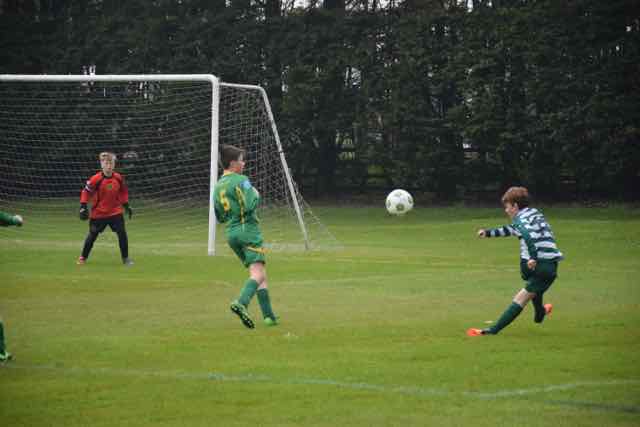 It was a murky afternoon with some unwelcome smoke in the air at the start of the game, but thankfully it got brighter as the afternoon progressed. Castleknock had beaten today’s opponents twice already this season, but cup games are one-off and anything can happen. Things looked bright for Castleknock when they made the breakthrough midway into the first half. Team captain Klevis Malaj found Fabian Wolski with his pass, and Fabian weaved his way through before he shot to the back of the net to make it 1-0. Castleknock could have doubled their lead before half time, but Brendan Stangu was denied by the Lourdes goalkeeper and captain who made a tremendous save minutes from the break.