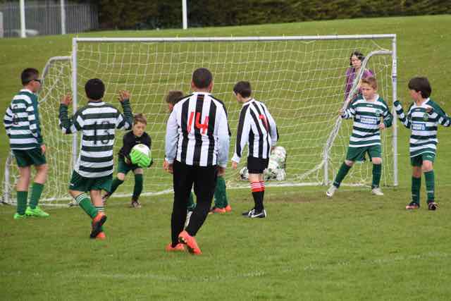 Celtic lined up for their last game of the season in Porterstown Park knowing that their main challengers, St John Vianney Boys and Cabinteely Boys, who were meeting in Kilboggit Park, could affect the outcome of the league championship. If Celtic won today against Dundrum FC and Vianney did not win, the title would be coming to Porterstown. Celtic started strongly and went close time after time. However, there was defending to be done also as Dundrum tested Theo Hennessy in the Celtic goal early on, but the home keeper was equal to the task. Costel Burlacu then hit a blistering shot that was pushed round the post by the excellent keeper Conor Cronin. On 13 minutes, Pedro Moreno’s fierce shot was just over the crossbar. 5 minutes from half time, just after being introduced by coach Craig McGivern, Alvaro Moreno raced forward and unleashed a powerful low shot into the corner of the net. 1-0 to the home side and their tails were up. Shortly after, Ruben Aherne was within a whisker of doubling Celtic’s advantage, only to see his shot go just wide of the right hand post. Just before the break, Dundrum struck back and got an equaliser when their big midfielder, Con O’Sullivan, hit the back of the net from close range. Celtic heads were down as they came off at half time, but the coach rallied them, urging them to a big second half, reminding them that they had played well, and more of the same would deliver the result.
