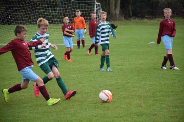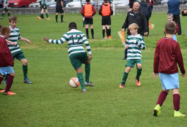 Titanic battle in Porterstown saw Celtic just edge this encounter. It looked bleak at the start of the morning as the rain chucked down, but by kick-off time, the Sun was making a welcome appearance. Ethan Hoey was ruled out after hurting his head while out playing the night before. We wish him a speedy recovery. There were no excuses this week for being slow out of the blocks as there was plenty of time for the lads to have their team photo taken for the 2017 Calendar, and to do their warm-ups in preparation for what was to be a magnificent contest.