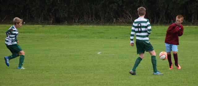 After last week when they went 0-4 down in 12 minutes, there was a sense of deja vu as they conceded a goal within a minute. However, Edward Nuzum and Matei Domsa in the heart of the defence and Daniel Cryan in goal were not unsettled by the setback, and they kept St Maelruans blank for the remainder of the half. Meantime, Mirav Vaitha, Michael Kelly and Brierton Murphy were containing the visitors' midfielders limiting their attacks. Sean Ogbomo came on to strengthen the defence, but he has an adventurous spirit and he ventured forward at every opportunity as Matei had been doing, which can be very risky when the opponents have speedy forwards which Maelruans possessed. Sam Kelly was battling up front but Celtic possession was limited in the early part of the game. Thomas Bolton again entered the fray late in the first half, as his midweek training had been prevented due to a knee injury, but he could not keep himself away from this game. He showed no signs of the injury and he immediately began to combine with his team mates, including debutant Patrick McKiernan and Gavin Peters who was again industrious in the middle of the park. Niall Maloney was another debutant and he was also combining well in his first game in the hoops of Celtic. Anthony Cooke was working well on the right side of midfield. It was again Thomas who struck Celtic's first. He raced in on the left and unleashed a shot into the net. 1-1 and the Celtic tails were up.