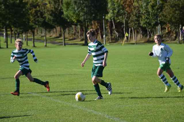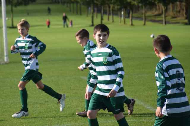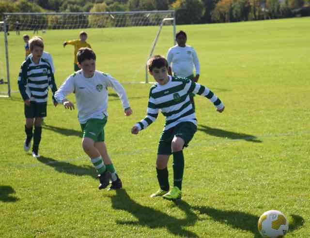 Celtic had their third win on the bounce when they played away to Cabinteely Boys in Kilboggit Park. After all the rain overnight, the pitch was surprisingly in great condition, and coupled with the beautiful backdrop of the Dublin Mountains, with the Sugarloaf looming large, an enjoyable spectacle was on the cards. All the players have continued to improve since their first outing in September against Leicester Celtic when they had to fight back from a 4 goal deficit. Match action