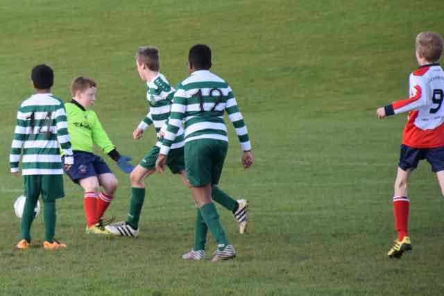 Celtic were caught cold early on and went 3-0 down to the visiting Leicester team. Patrick O’Reilly pulled one back before half time when he got the ball in his own half and ran past a host of defenders before slotting the ball past the Leicester keeper. However, the home side still trailed by 4-1 at the break conceding one late in the half. Celtic did have chances with Anthony Cooke, Ethan Hoey and Sean Ogbomo all going close.