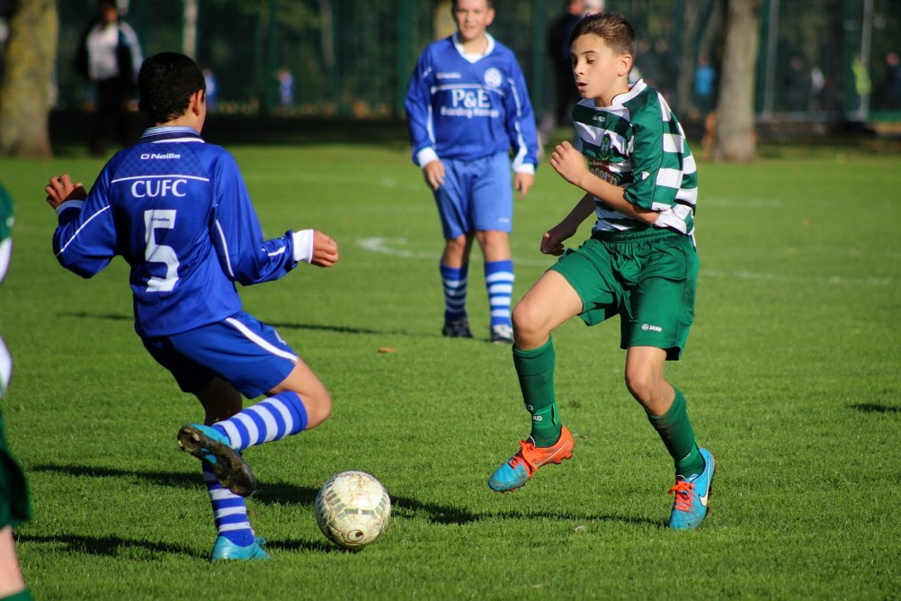 On an extremely bumpy Pitch 10 it was Leixlip who started the better and for the first 5 minutes had a lethargic looking Celtic pinned back. However, having weathered the early storm, Celtic eased there way into the game and scored the crucial first goal with 15 minutes on the clock. Mark Hughes won the ball and played it up to Andrei Enache in turn played the ball first time out right to Ciaran Collins. The rest will go down in Castleknock folklore as the mercurial Ciaran cut inside before beating one, two, three players and then easing to his left to plant the ball into the Leixlip net. A goal worthy of Messi, a goal worthy of a Magician because that’s what it was …MAGIC. 1-0.