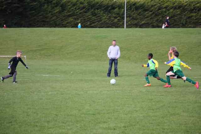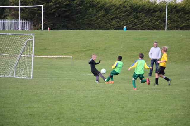 Celtic competed for every ball and never gave the Portmarnock players time on the ball. It was a very entertaining game with the play flowing from end to end. Theo Hennessy was guest goalkeeper for Celtic in the first half, stepping from his Under-9 team for which he plays on a Saturday. He was in splendid form and dealt competently with every shot that Portmarnock could manufacture. Ren Mulligan, Joseph Dunne and Ibrahim Hussein were dominant in defence, while Tadhg Leahy did not give the opponents an inch, using his body strength to hold off attackers, which is something he has learned from playing the other football code. Cosdel Burlacu and Pedro Minero were immense in the middle of the park and stopped many of the Portmarnock attacks from developing. Pedro’s skills on the ball were a joy to watch. Up front we had James Bannerman who fought hard to gain possession on the ball and went close on a few occasions to scoring. Ruben Aherne did well as he chased the ball and pressurized the opposition in his first game. The golden moment in the game came mid way through the second half when Ren Mulligan sent through the perfect pass to John Ogumtuase. John still had much to do, but he raced forward with the ball and just as the keeper was about to block him, John shot low and hard which sent the supporters wild on the touch line. Well done John, and his goal probably made him a candidate for man of the match. But it was given to Ren Mulligan who gave a superb display of footballing skills, tackling well as he used his upper body strength which he has perfected, beating players, distributing the ball, and never stopping for a breather. Well done to Ren for his award, and to the rest of the team on the day for a brilliant first game. See you all at training on Thursday at 6.30pm.