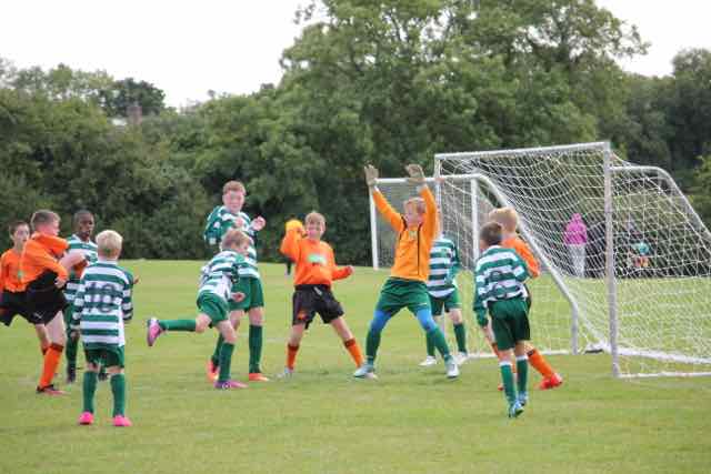 A good warm up and ready to go. Captain Cian DaC leading the team out. The long grass and the heavy ball seemed to be working against Castleknock as their control and passing was not going to plan. Too loose too often and they gave the initiative to Ardmore. And sure enough with their first attack Ardmore got in behind the defence and Bradley C, not expecting to play in goal, was unfortunate with his save which squirmed under his body and rolled into the net. But Bradley C, cool as you like, took it in his stride and was making sure the goals did not fall down as he was leaning against the post for the rest of the half, literally. When Castleknock did make connections with their passes, they played right through Ardmore. A couple of overlaps in the first half were creating all sorts of trouble. Josh H started well and was setting up play nicely but was taken out with a crunching tackle. Game over for Josh H. Ardmore had one more attack with Bradley C making a fine save. All huff and puff in the middle third and 1-0 it ended at half time.