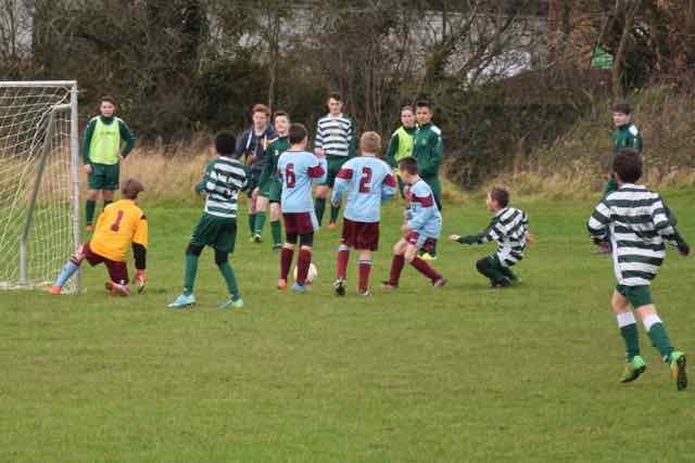 Castleknock Celtic came head to head against Vianney Boys for the third time this season at 3 different venues. This time it was at home in Porterstown Park on a mild morning after a couple of months of miserable rain. Celtic were keen to show the progress they have made this season, especially after an excellent win a couple of weeks ago at the National Sports Campus against Clontarf FC. They set about their task well. They held the visitors goal-less till midway through the first half, but a smart piece of finishing by Vianney gave them the advantage. Celtic did not lose heart and bounced back with a great piece of battling by Cosdel Burlacu who raced into the box to dispossess the Vianney keeper and set up Pedro Moreno who shot home into the far corner of the net to level things. 1-1 at half time.