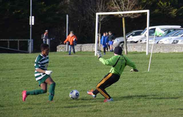Portmarnock show plucky side and deserved their share of the points away to Celtic in Porterstown Park. Celtic looked the slicker of the sides in the first half, but had only one goal to show for their superiority. A fine through ball from Luke to Glory Nzingo was finished with aplomb by the striker who rounded the keeper with style. It was not all one way traffic in that first half, and a harsh penalty was awarded to the visitors, but they squandered the opportunity of squaring things.