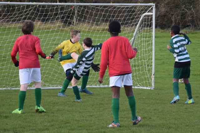 Celtic were the first to threaten in an evenly contested league game. James Bannerman broke free 2 minutes into the game, but he was denied by the Knocklyon keeper who was to make many important saves. Conor Lawless and Ibrahim Hussein were the full backs for this game, with Ren Mulligan in front of them linking the defence to the midfield. Behind them was Theo Hennessy who was again on duty between the sticks in the absence of Ahmed Niazi who is recovering well and hopes to be back next month. We were delighted to see Ahmed who came along to the game to support his team mates with his Dad Amir.