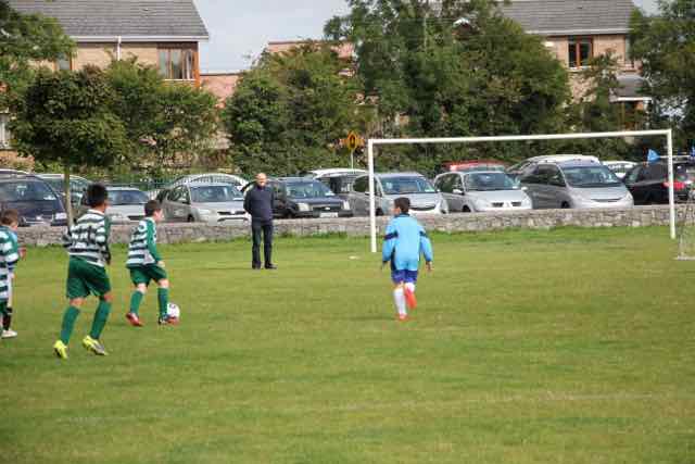 Celtic travelled to Knocklyon Utd for their latest league game with a squad of 12 players all looking to do the double over their rivals, having won the first game at Porterstown. The game began with Celtic getting their passing game going and creating some half chances, but didn’t really trouble the Knocklyon keeper. Charlie was on net minding duty for Celtic and dealt with everything very comfortably. Simon captained the team and played solidly at the back with the improving Ross and Daniel on either side, Connor and Danny played on the flanks with Declan and Owen B in centre, while Saleem was tasked with playing up front. 10 mins in, Celtic had a great chance to take the lead but the forward could not get on the end of the cross. Knocklyon then stole possession in Celtic’s last third and the deflected shot found the bottom corner.1.0 Knocklyon.