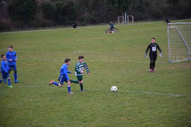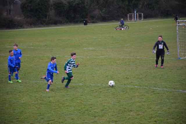The game started like an old fashioned Cup tie with pace and it was Collinstown who struck in the opening two minutes when their powerful No 12 burst through the defence before smashing the ball into the roof of the net. What followed was the charge of the Green & White Light brigade with a first half display never see before from a swashbuckling Celtic. They literally powered forward incessantly. The football was pure and intelligent and this produced chances – three over the top with the keeper beaten, two against the post, three wonderful saves by the Collinstown No 1 and that was just the ones that came closest. Esse, Ivan, Ben, James, Luke and Andre all came close but the Collinstown defence stood tall. Never has this Reporter seen such a one sided first half and how Celtic never scored will remain a mystery that perhaps only Sherlock Holmes (brother of Coach Sherlock) will solve. And despite all the possession and all the chances it took a wonderful save at the other end from “Mad” Max Ostachuk to keep the scoreline at 0-1.