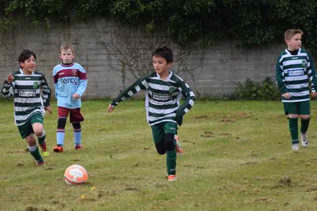 What a performance from Celtic’s Under-11F1 team who travelled to Kilmore in Coolock to take on their great rivals, St John Vianney Boys. There was a trickle of rain that did not dampen spirits, and Craig warmed the lads up. By kick off time, they were well ready for the off.