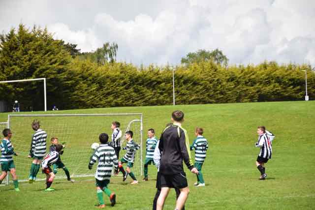 Celtic lined up for their last game of the season in Porterstown Park knowing that their main challengers, St John Vianney Boys and Cabinteely Boys, who were meeting in Kilboggit Park, could affect the outcome of the league championship. If Celtic won today against Dundrum FC and Vianney did not win, the title would be coming to Porterstown. Celtic started strongly and went close time after time. However, there was defending to be done also as Dundrum tested Theo Hennessy in the Celtic goal early on, but the home keeper was equal to the task. Costel Burlacu then hit a blistering shot that was pushed round the post by the excellent keeper Conor Cronin. On 13 minutes, Pedro Moreno’s fierce shot was just over the crossbar. 5 minutes from half time, just after being introduced by coach Craig McGivern, Alvaro Moreno raced forward and unleashed a powerful low shot into the corner of the net. 1-0 to the home side and their tails were up. Shortly after, Ruben Aherne was within a whisker of doubling Celtic’s advantage, only to see his shot go just wide of the right hand post. Just before the break, Dundrum struck back and got an equaliser when their big midfielder, Con O’Sullivan, hit the back of the net from close range. Celtic heads were down as they came off at half time, but the coach rallied them, urging them to a big second half, reminding them that they had played well, and more of the same would deliver the result.