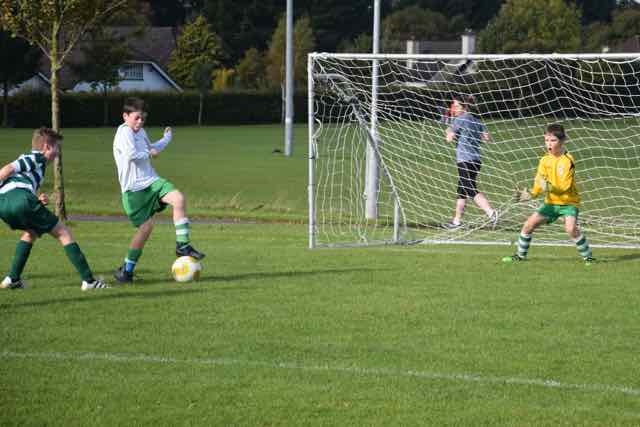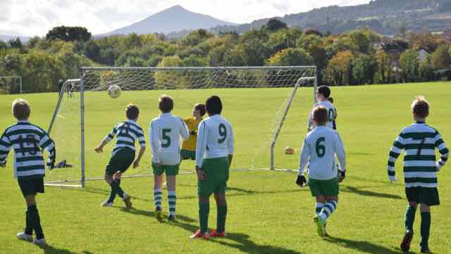 Celtic had their third win on the bounce when they played away to Cabinteely Boys in Kilboggit Park. After all the rain overnight, the pitch was surprisingly in great condition, and coupled with the beautiful backdrop of the Dublin Mountains, with the Sugarloaf looming large, an enjoyable spectacle was on the cards. All the players have continued to improve since their first outing in September against Leicester Celtic when they had to fight back from a 4 goal deficit. Match action
