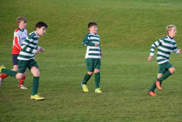 Celtic were caught cold early on and went 3-0 down to the visiting Leicester team. Patrick O’Reilly pulled one back before half time when he got the ball in his own half and ran past a host of defenders before slotting the ball past the Leicester keeper. However, the home side still trailed by 4-1 at the break conceding one late in the half. Celtic did have chances with Anthony Cooke, Ethan Hoey and Sean Ogbomo all going close.